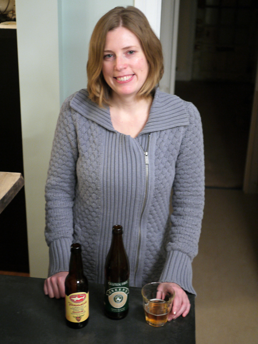 So I invited Abbey to join me in a tasting of gluten-free beers. I was a bit dubious of the quality we'd find, knowing that malted wheat or barley, which are responsible for the gluten in most beers, also add a lot of flavor and heft. But Abbey had recently said she'd found options that taste like "real" beer, and I had tracked down a couple I wanted to try, as well.