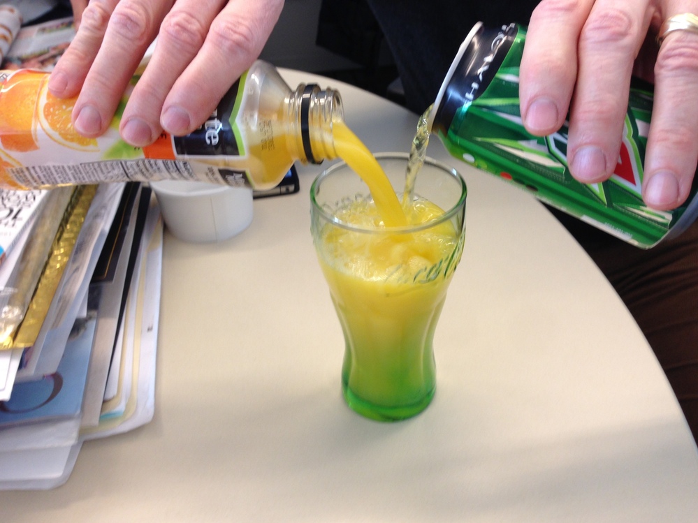 When I was a kid, on special occasions, my parents used to serve me a Sprite and orange juice, which they called a "Screwdriver." I'm sure there was many a freaked out teacher who heard 6-year-old me say I liked to drink screwdrivers with my mom and dad. Anyway, if you must mix yourself an orange juice and soda, make yourself a "Screwdriver," and you'll be better off. ]